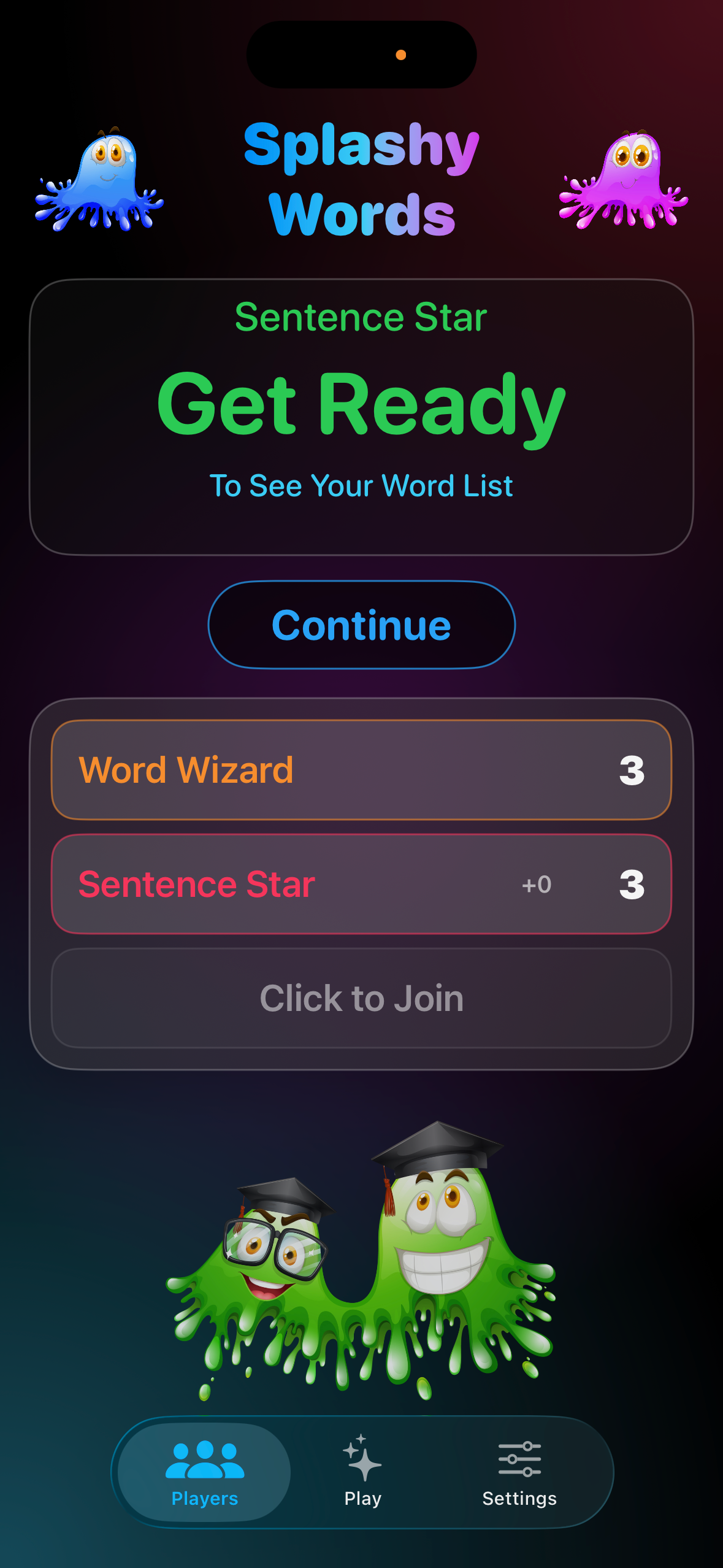 Go to the Players tab and tap on a player’s name or profile area. You’ll see options to change their reading level between Emerging, Growing, and Confident. Each level adjusts vocabulary difficulty, star thresholds, and timer speed.